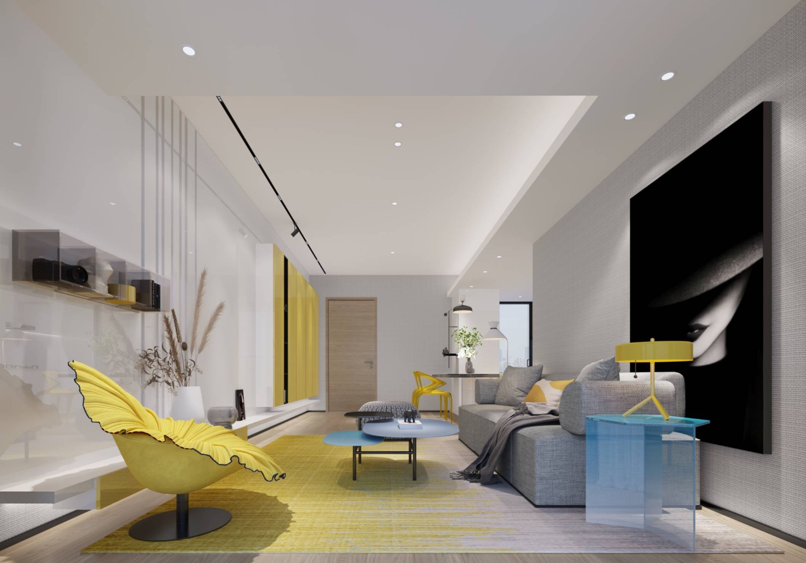 通过巧妙的空间布局,色块的拼接与碰撞,多材质元素的组合,让空间层次分明,更呈现出时尚与个性。