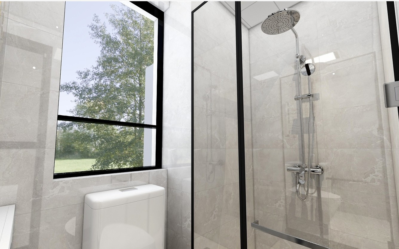 卫生间做三分离设计,浴室柜外置,手盆、马桶、淋浴不干扰。
