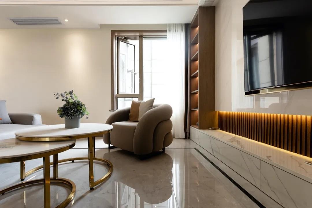 本案设计在中式的风格基础上,通过金属、线条纹理、大理石的质感呈现一个细腻、考究的空间格调。即满足了业主对于传统 中国文化的热爱,也考虑其对精致、优雅生活的追求。