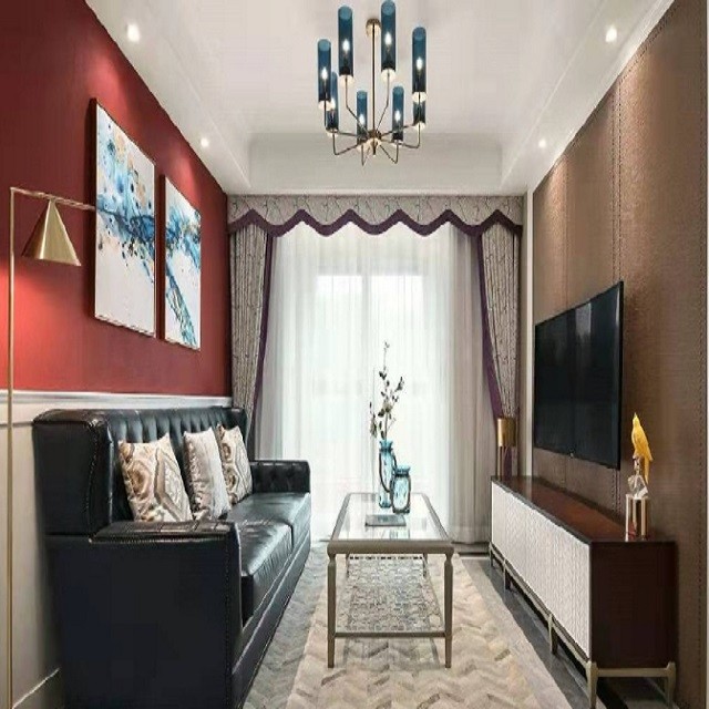 整体色调温馨为主选用朱砂红提色让整个空间鲜活起来在家装设计中亮色只可小面积使用