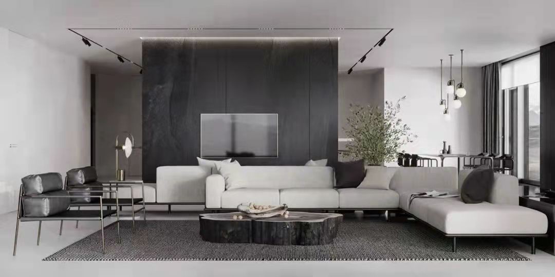 选用的是非常经典的颜色--黑色、白色以及灰色,配色简单,没有什么修饰,纯粹是为了把简单发挥到***,打造极简的居住环境