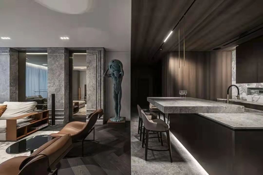 在127平方米的公寓当中,打造整个空间的荷尔蒙气息,精致大气的设计氛围,突出男性的审美要求。