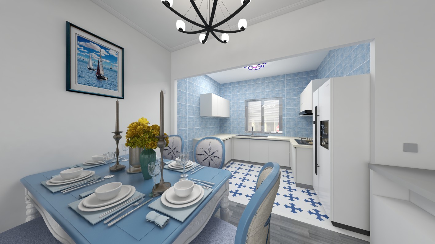 【厨房-餐厅】对于地中海来说,白色和蓝色是两个主打,***还要有造型别致的拱廊和细细小小的石砾。在打造地中海风格的家居时,配色是一个主要的方面,要给人一种阳光而自然的感觉。主要的颜色来源是白色,蓝色,黄色,绿色以及土黄色和红褐色,这些都是来自于大自然最纯朴的元素。