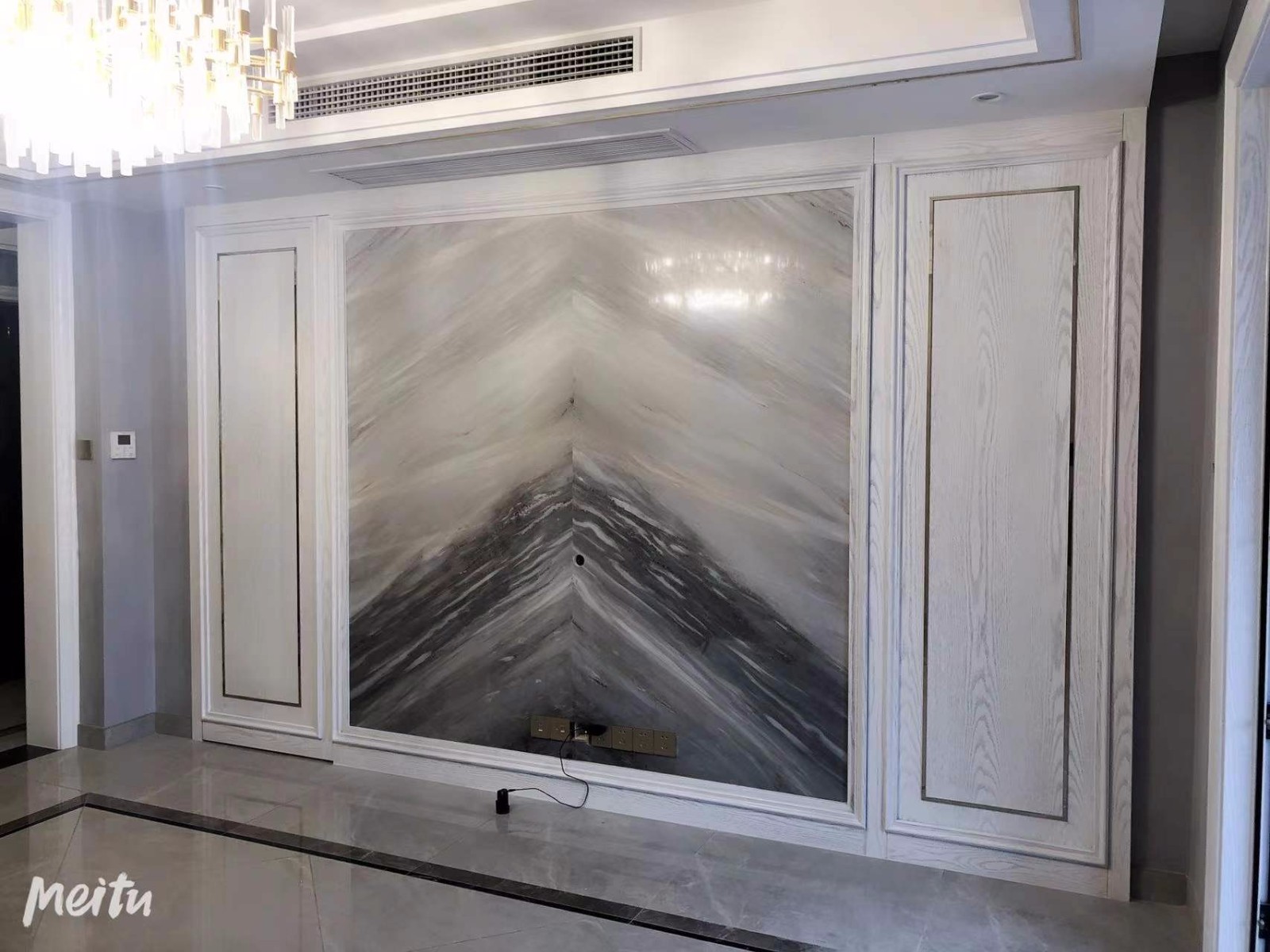 造型大理石与木饰面的经典搭配(左边为隐形门)