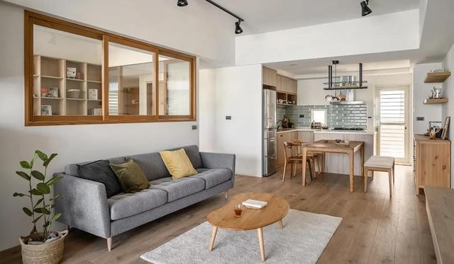 为了让室内看山去骨更加通透在沙发墙上开了一扇玻璃窗