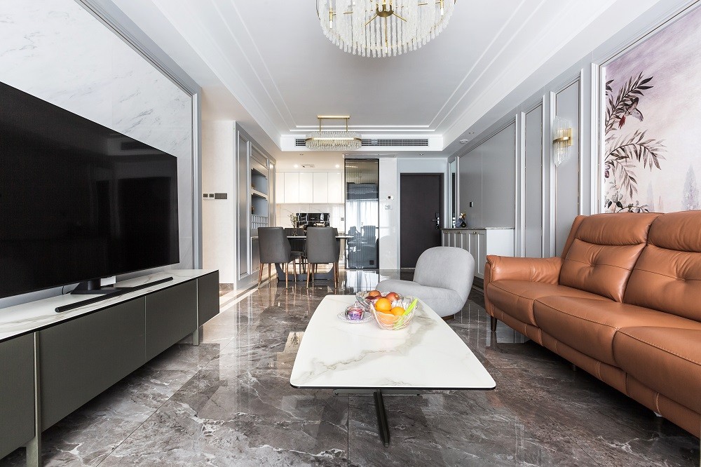 餐厅与客厅整体形成空间延展,嵌入式的餐边柜满足收纳又有起到空间装饰美化的效果
