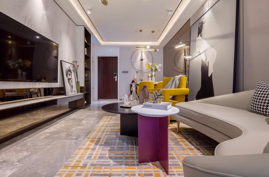 客厅以简洁的线条营造休闲区域,曲线型沙发设计,显得更有格调。