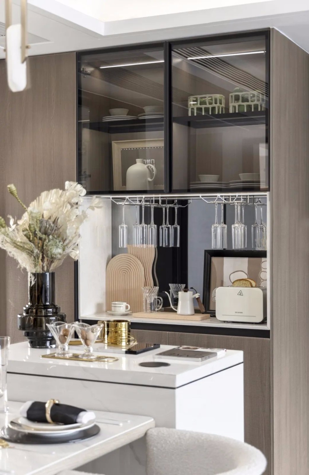 增加餐厨的互动性,同时餐厅兼具家庭minibar的功能。