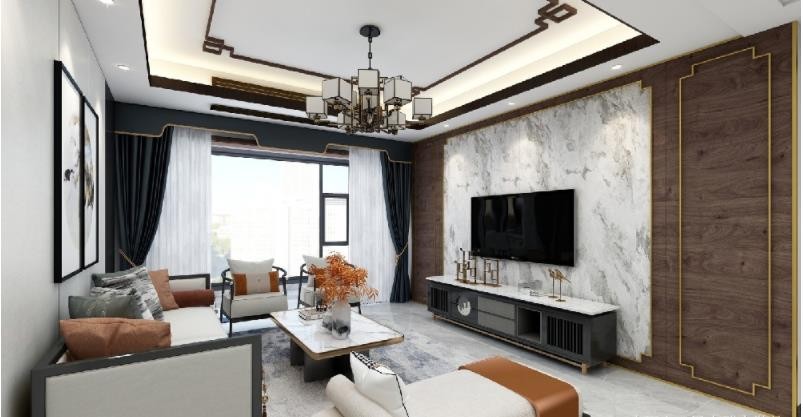 客厅继承了中国古典的设计元素,又融合了现代简约的设计风格