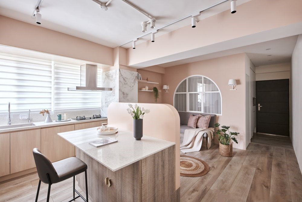 相爱相亲的一家三口保留两室有一个暗卧室想有采光 客餐厅想把功能区分开让空间看起来更大气。这个案例全屋基本粉色系,显的非常年轻而又温馨感!