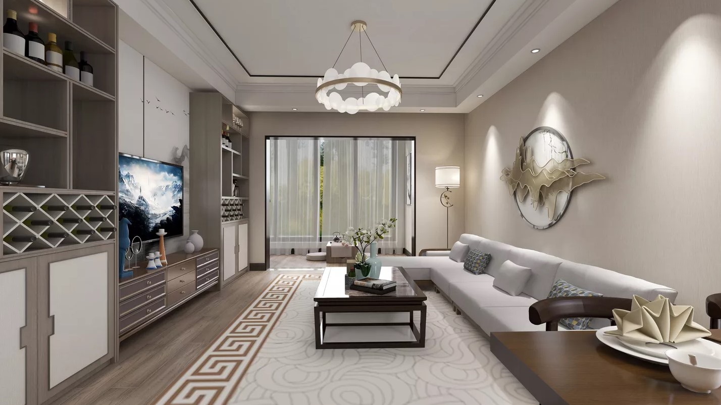 客厅面积较大,很宽敞,电视墙造型不是很复杂,简单不失优雅