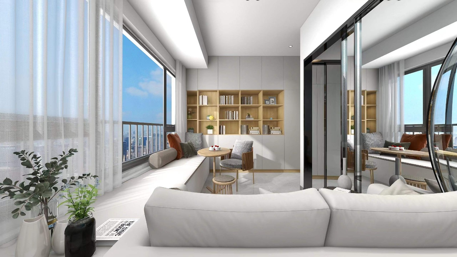 1.7米沙发+飘窗形成一个围合,充分利用空间,视觉延伸儿童房