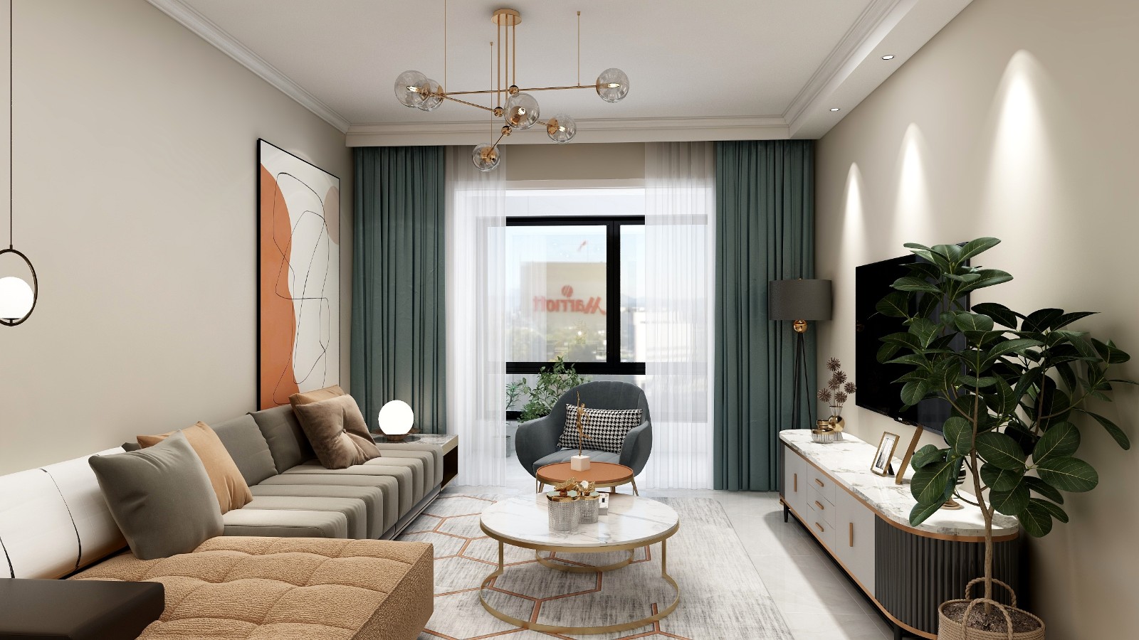 电视墙采用简单的奶咖色乳胶漆,简约不过时,避免视觉疲劳