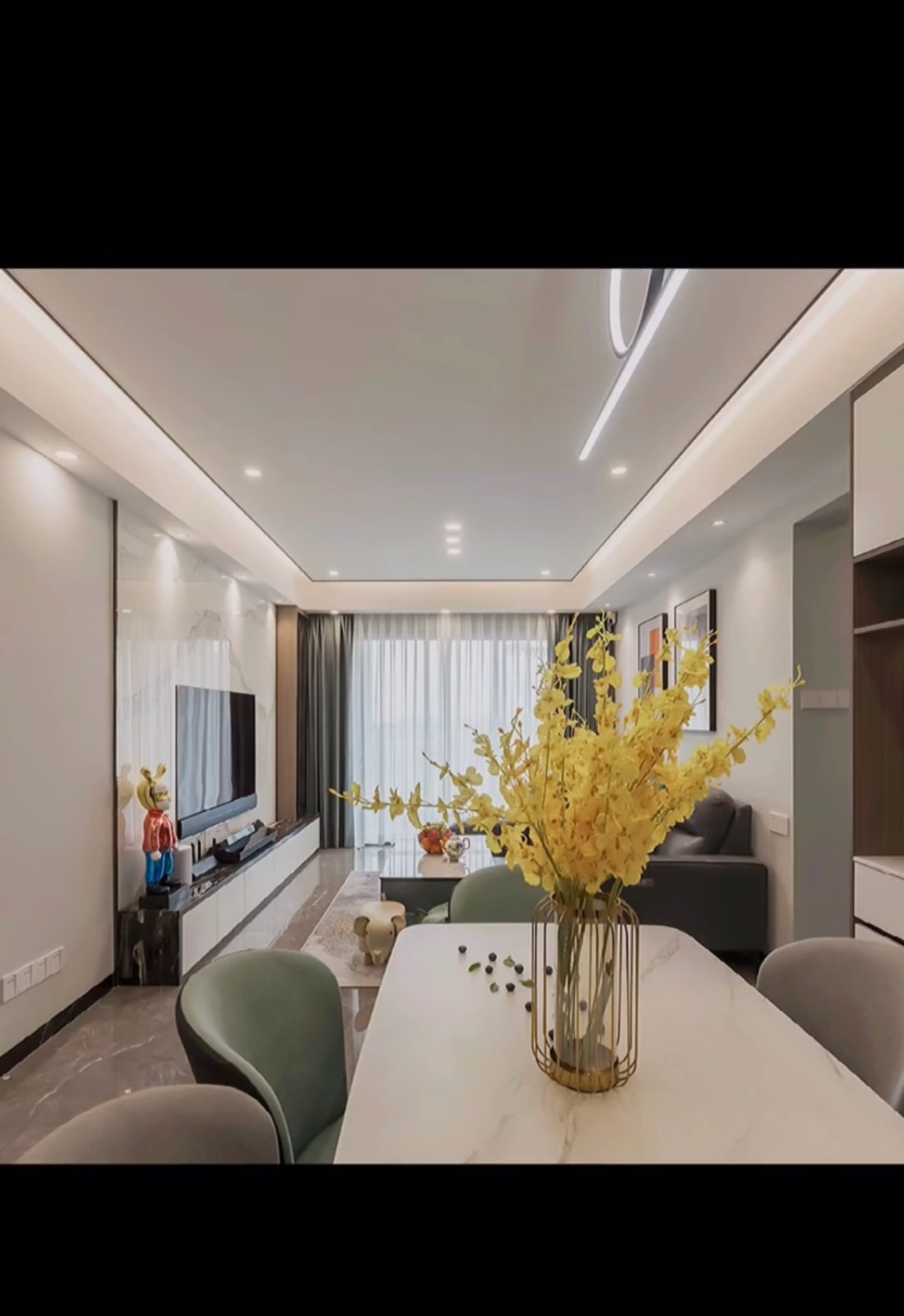 不论是墙面、地面、吊顶乃至家具都力求质地纯洁、造型简洁及工艺精湛。