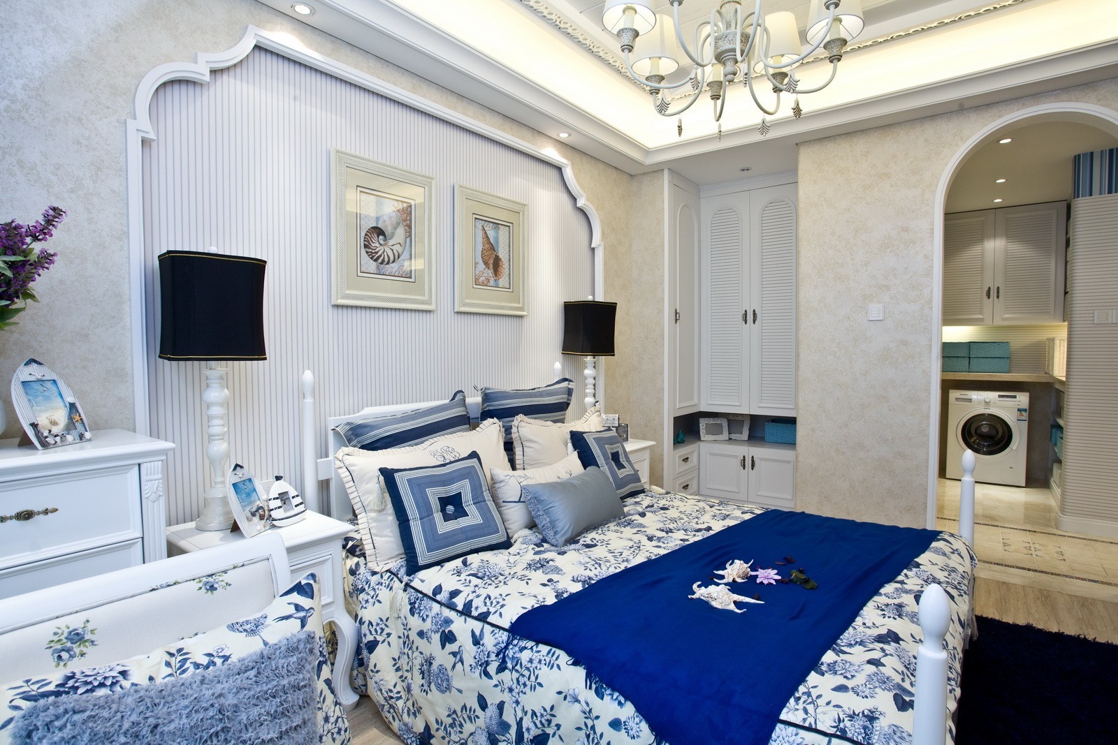 条纹蓝线墙面装饰,体现空间线条十足,生活空间处处使人感到悠闲自得。