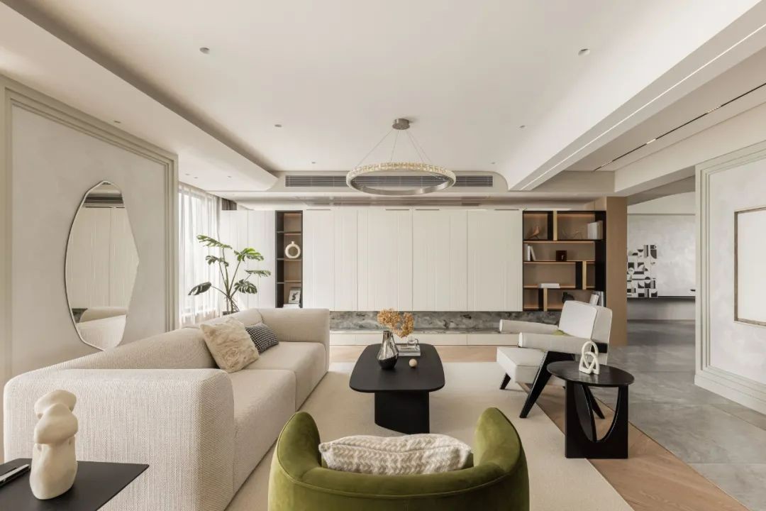冷翡翠的石材点缀包裹,让整体浅色调的空间增添了丰富性。