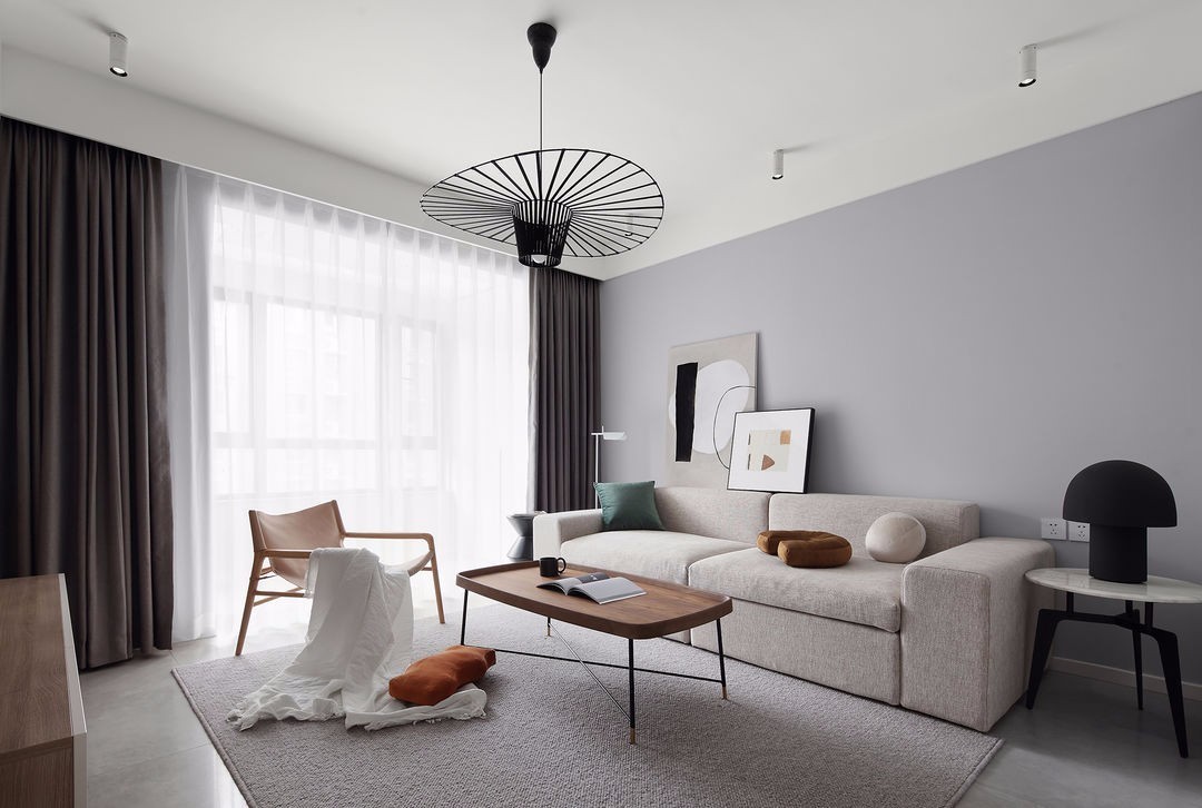 本案是90后业主的家,父母偶尔来一起居住,用低饱和度的灰色调与原木元素,诠释一个简约精致,富有现代气息的居住空间。弱化分界的概念,使各功能区动线流畅,设计师倾以巧思在略显局促的空间将调酒,冲泡咖啡,阅读等生活情趣全然安放,在厨房的设计中,空间不能一览无余,让人不禁想象空间的边界在哪里。