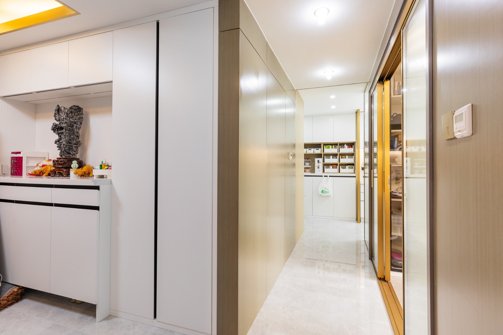 原始三房户型,原有户型利用率不高,过道太长,客餐厅的视线不是很规整,家里缺少储物空间,一家四口,缺少男主人的独立书房,和女主人的衣帽间储物间的需求。