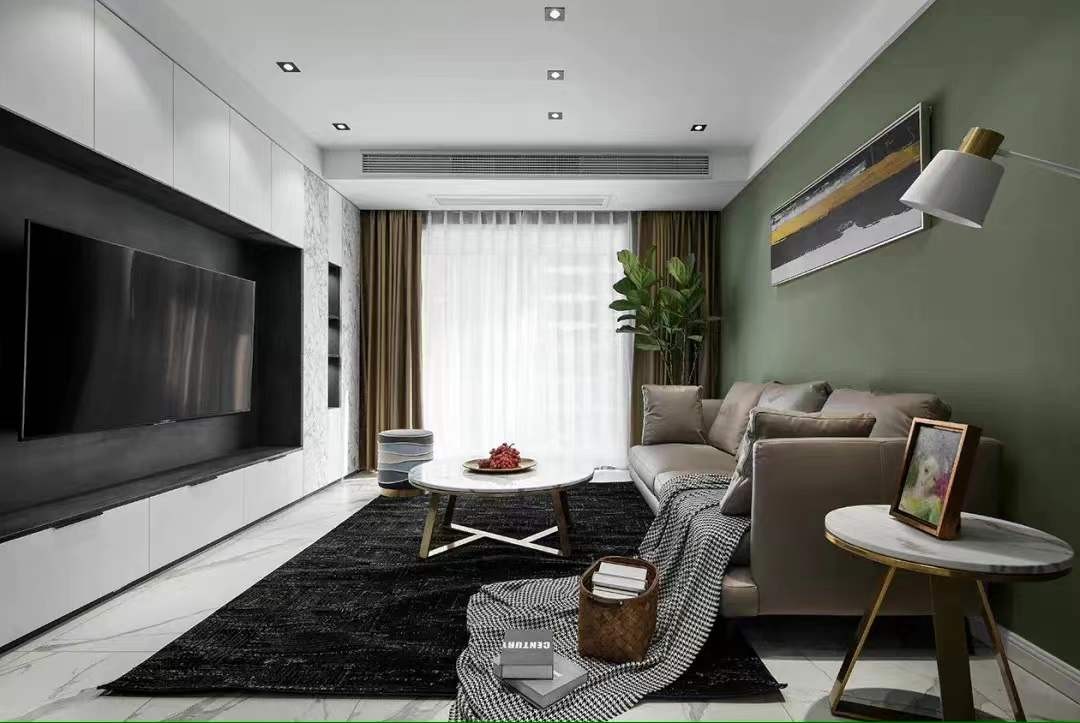 客厅现代简约风搭配,电视墙做了镶嵌的造型,很是独特