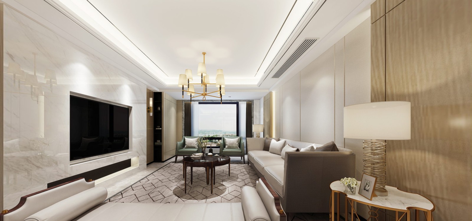 所有元素都是中性的,并以柔和的暖色调相互和谐地结合在一起。该设计使简单几何形状的家具保持正确的比例,消除了不必要的视觉影响。