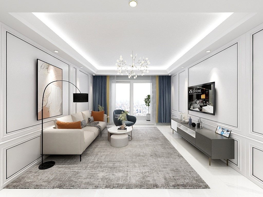 客厅以白色为主色调,点缀着同色系的家具,简单又不失精致。