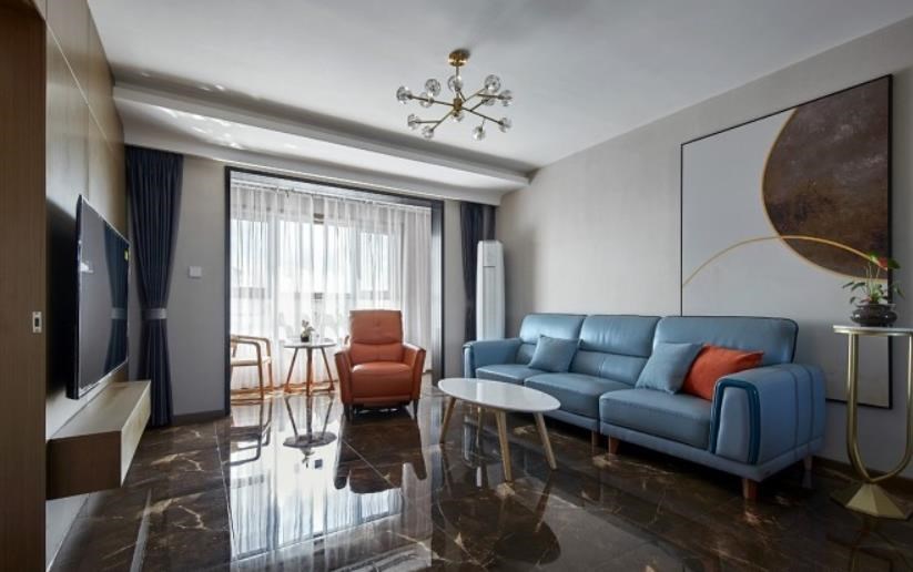 客厅保留墙面的白色,看似不起眼,实则无所不能的白,配上沙发色彩,舒适宜人的氛围拿捏到位,可与年月经久相伴。