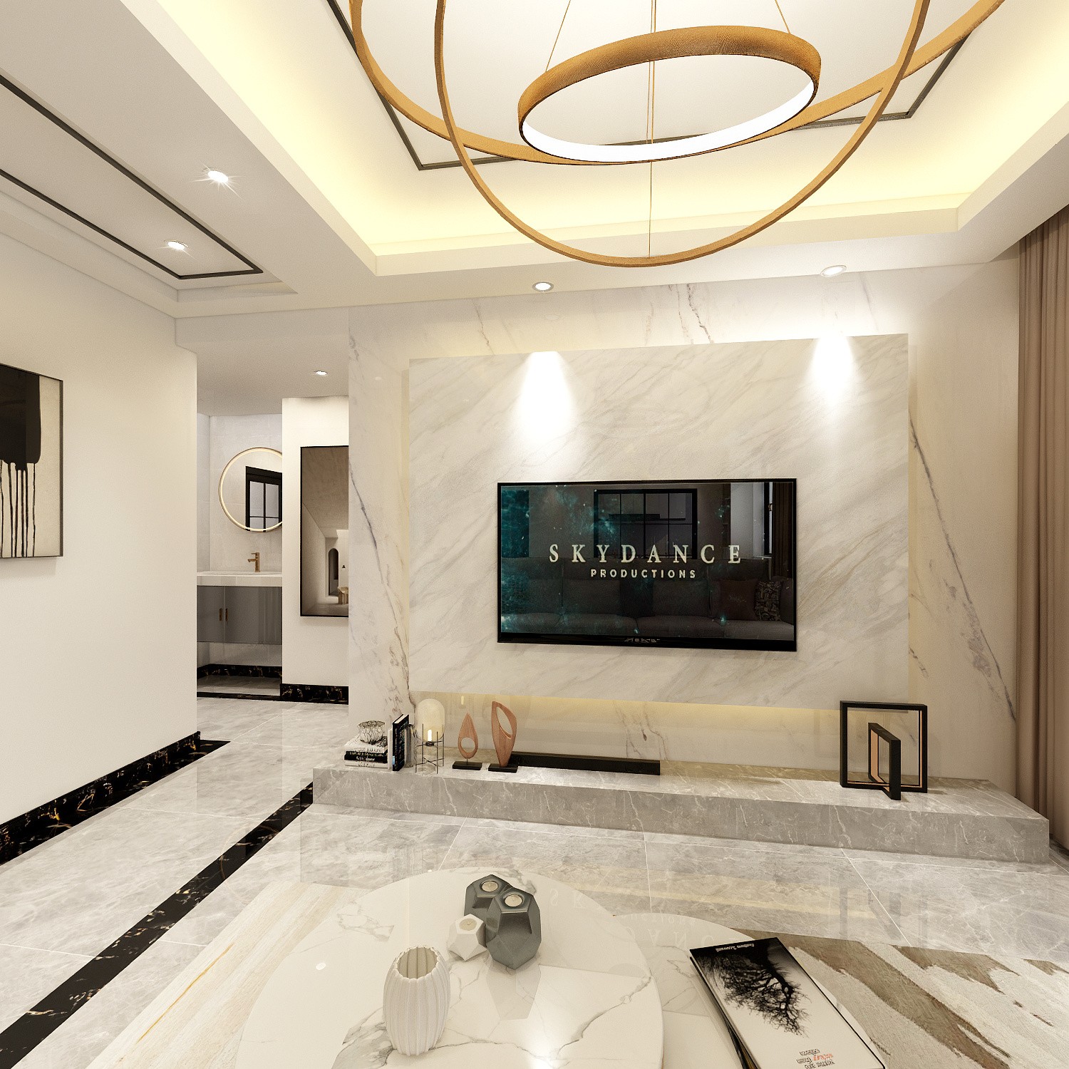 过道天花和客餐厅天花分开,空间感更明显,再加写线条更有层次