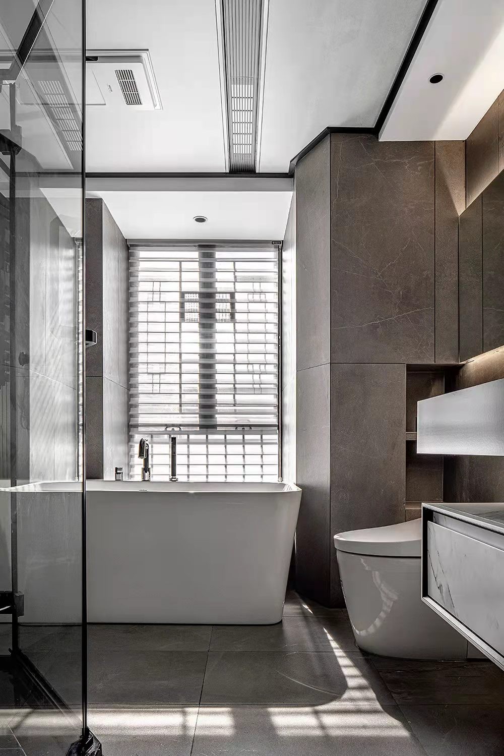 悬挂式的岩板背景墙 看上去既坚实又具有与重力相悖的轻巧