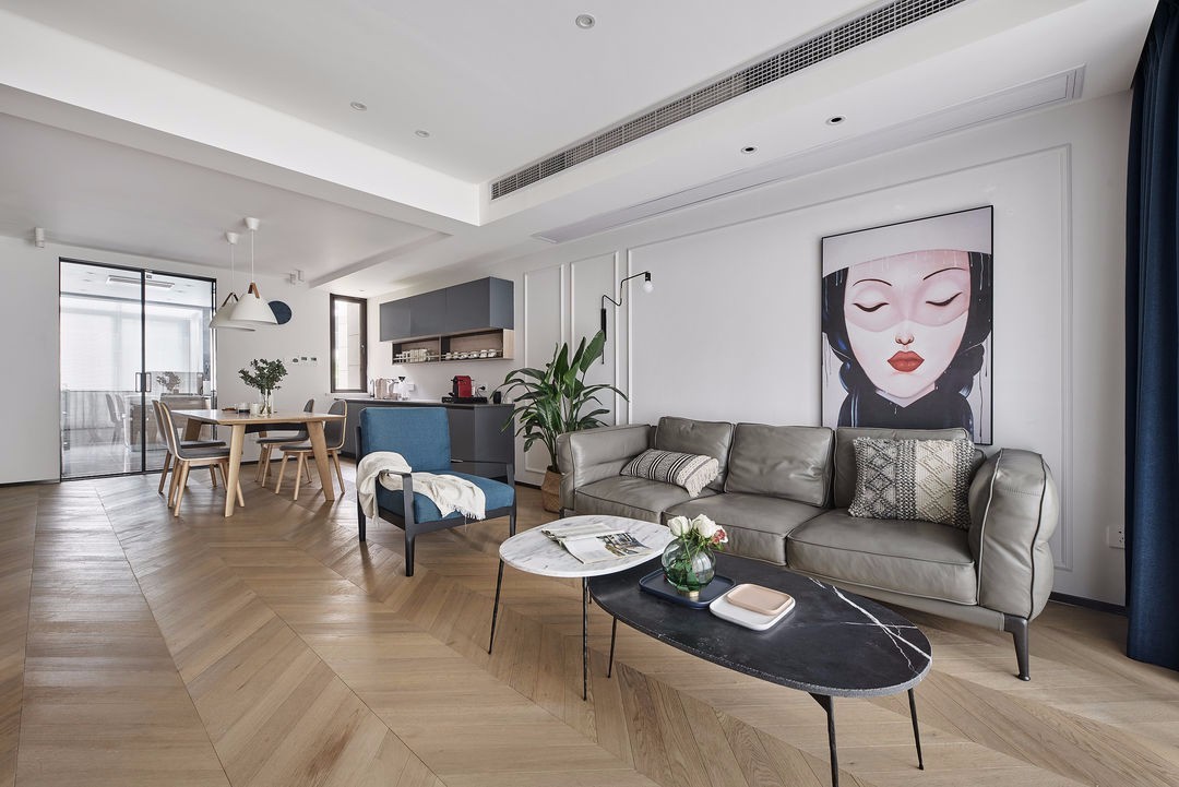 本案是一家三口加上父母,三代同堂。 屋主喜欢台式的结构感和北欧的色调,设计师在满足功能性的同时结合原木打造出清新惬意的舒适空间