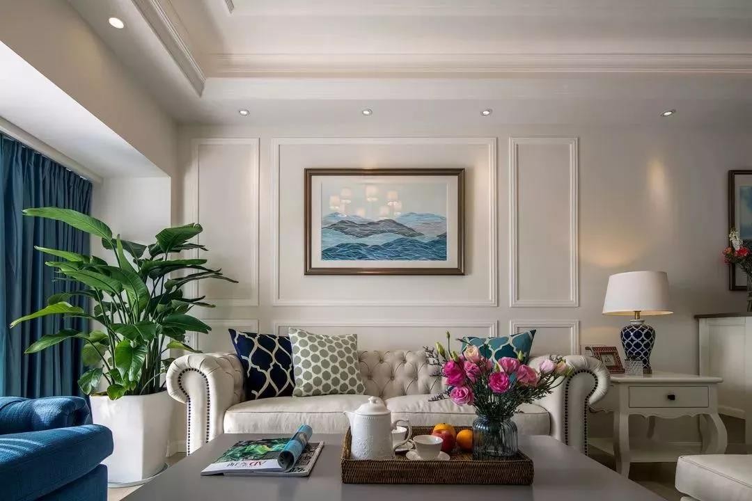 潮蓝色沙发显得柔和平静。