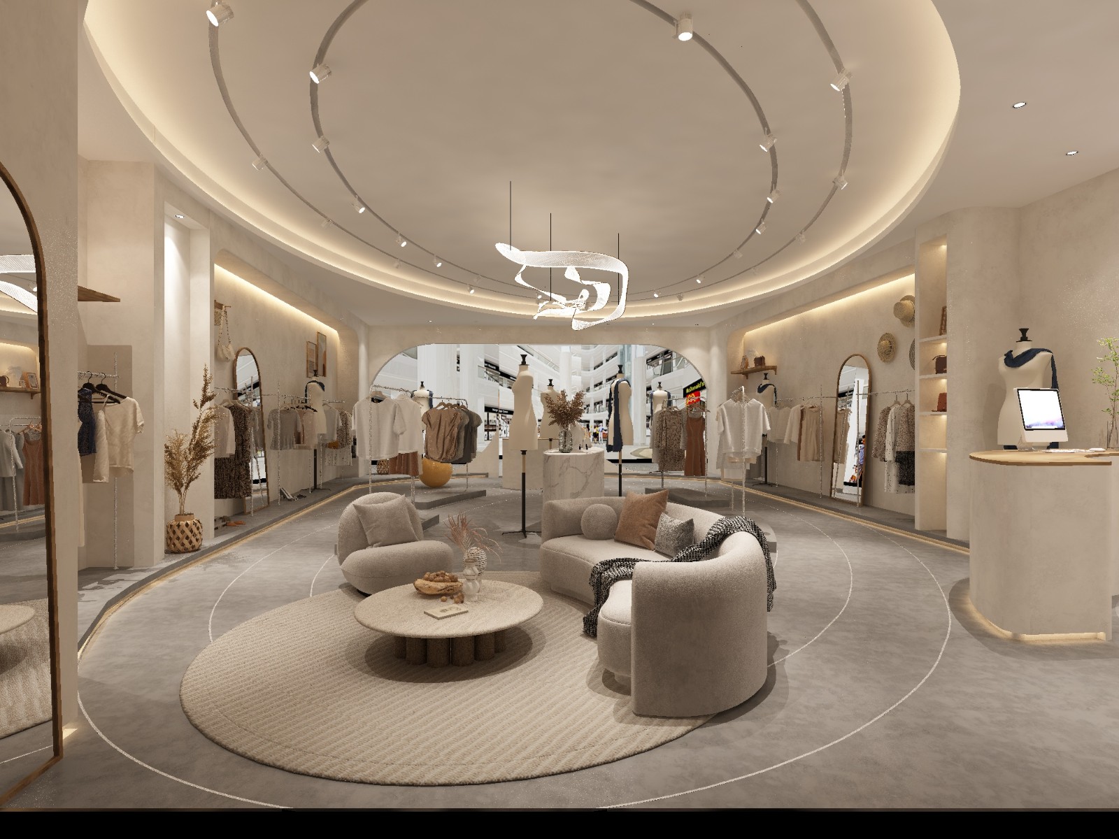用以陈列服装,并通过展墙错落的布置,让空间流动起来