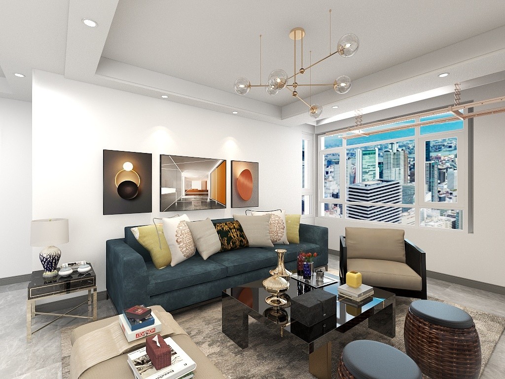 客厅采用极窄吊顶造型,搭配射灯点缀,极大限度增加空间拉伸感。