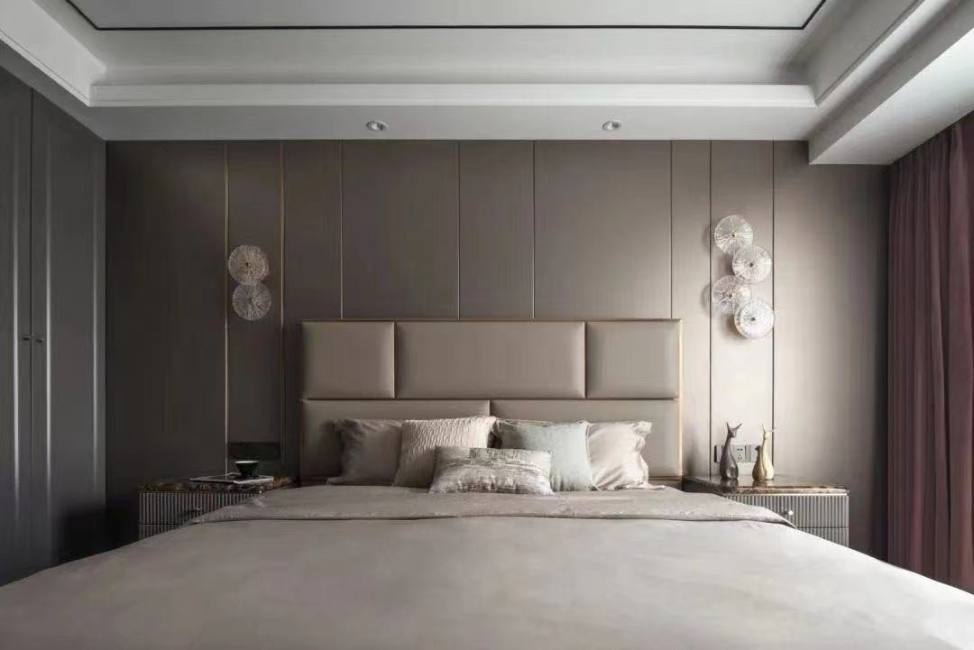 主卧则是将***的暗灰与温柔的气息糅合,灰色系的木作与墙面硬包装是带来低调朴素的宁静,粉紫色的神秘与柔美。