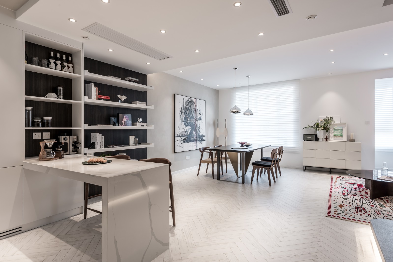 生活的浪漫,在于一日三餐相邻而坐、相视而笑、温情满溢,岛台的存在提供了除厨房以外,更多的互动空间