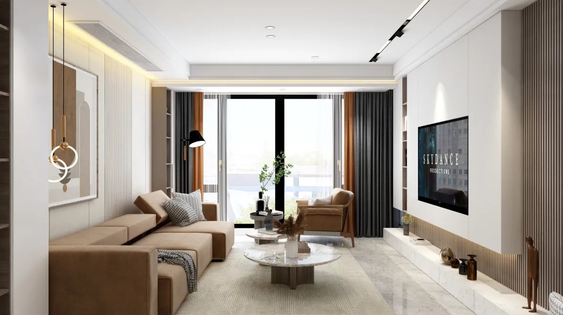 客厅主要以轻奢风格设计为主,大量运用焦糖色,温馨浪漫