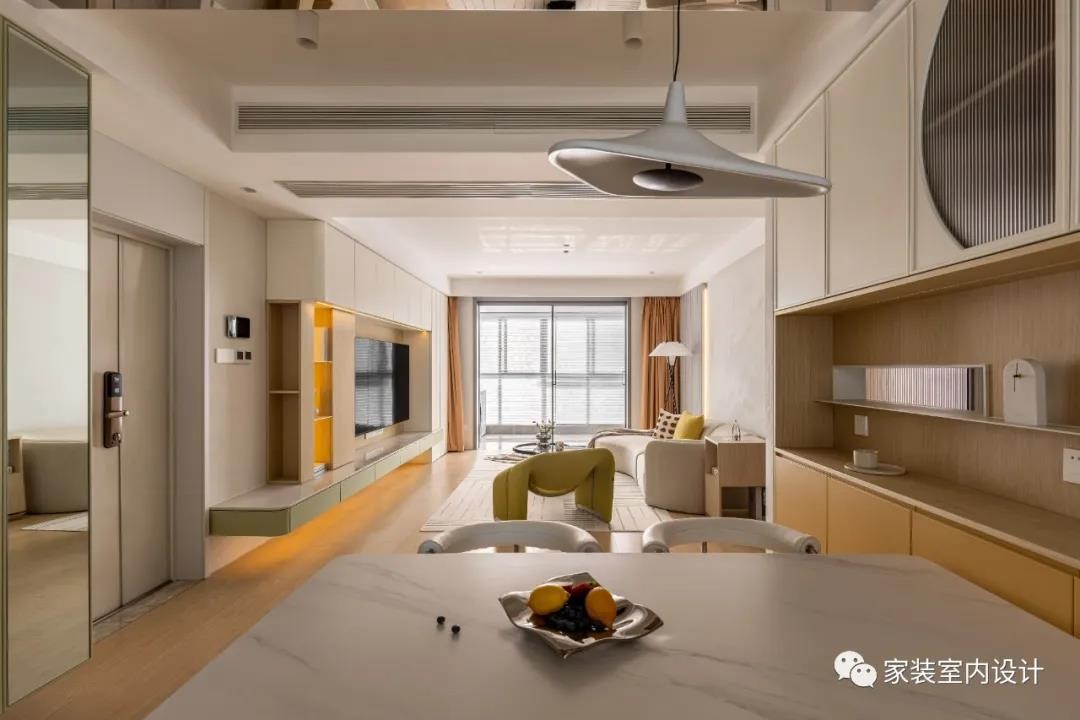 客餐厅全景,整体色调非常的温和,很有家的归属感。