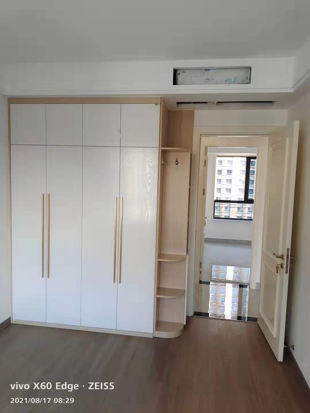 小卧室定制衣柜配加长拉手。