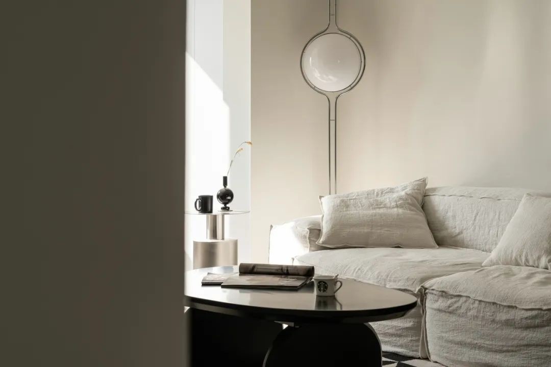 境遇·静谧,于时光之中寻诗和远方 本案屋主一对从事摄影艺术的夫妻 期望家是一个可以让心灵回归的栖身之所 全屋墙面顶面用到的是有色乳胶漆 四周做了石膏板抽缝增加硬装的细节 电视背景墙用曲线造型缓和氛围 软装的挑选上面我们尽量用低饱和度的单品