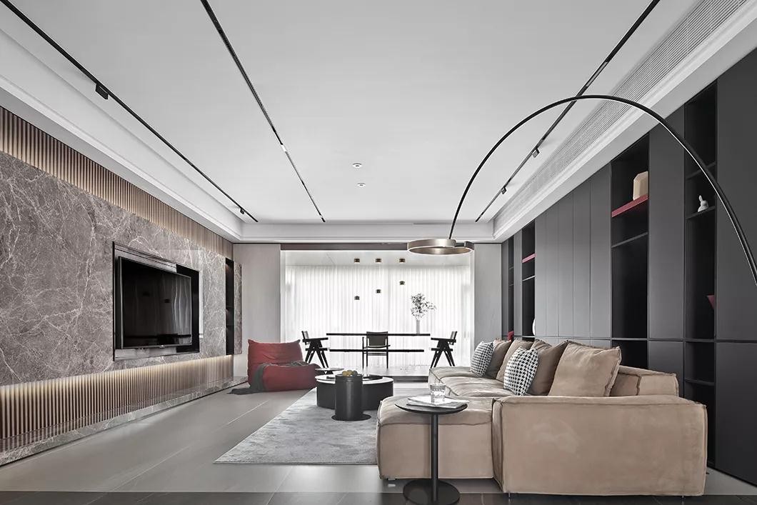 沙发背景大面积的收纳柜,客厅颜值的担当,提高了空间的实用性与功能性。