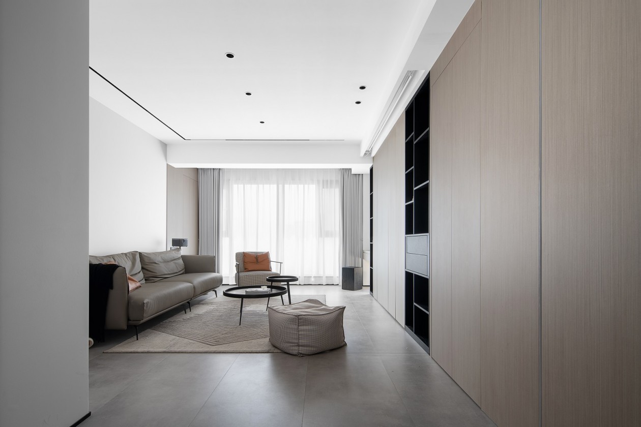 背景用木饰面和黑色装饰柜给整体设计点睛