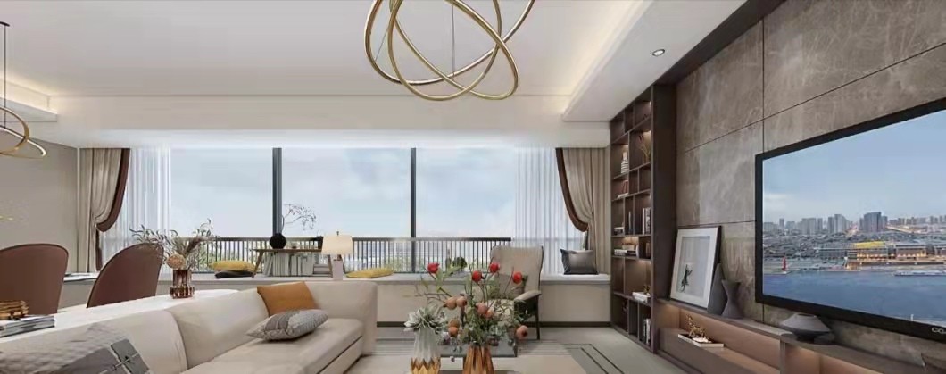 客厅与餐厅区域合并,预留***动线,不显拥挤,客餐厅靠近整面玻璃窗,飘窗的设计使得整个空间更加的通透,选用透光性强的窗帘,起到遮阳透光的作用。