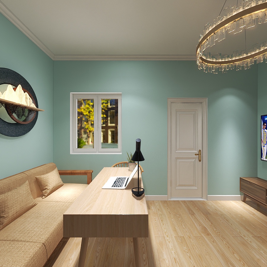 墙面点缀淡绿色,活力更无限