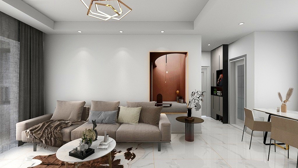 现代简约,地面600*1200的大砖通铺到阳台,显得宽敞明亮。