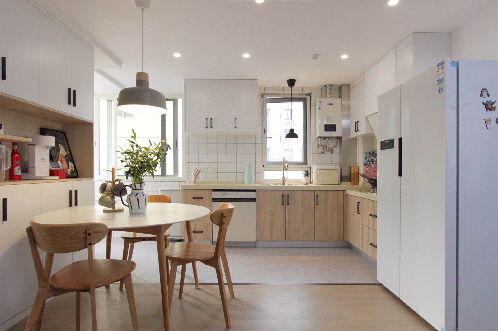 厨房设计一如既往的干净整洁,木质的清新与极简白的结合,使整个空间瞬间温馨明亮。