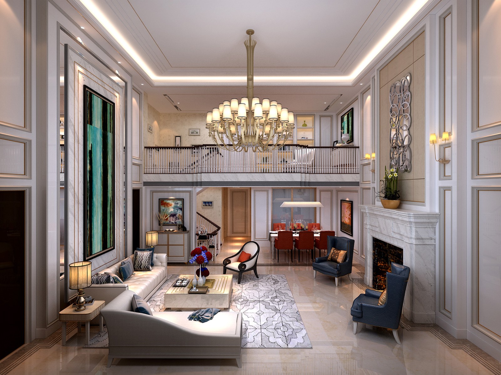 客厅空间.现代简约欧式风格白色调系使空间看起来更加整洁大方