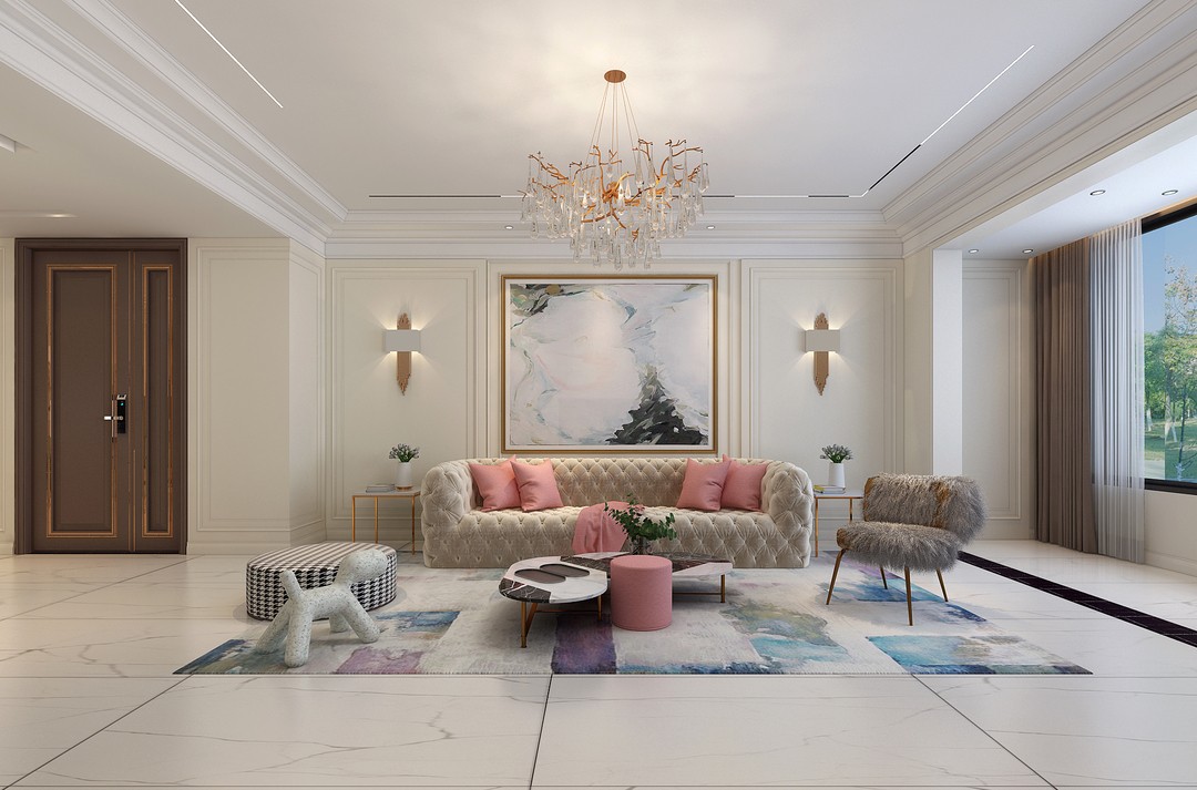 此案例更多的让女主人有更加的体验感,包括软装饰的绵柔,灯饰的美意。在体现艺术造诣的是整体电视背景的设计,通体大理石的艺术线条,勾勒了家空间的一处独特,太空的遨游中有一处支撑,点开一盏灯,象征着希望与和平....接下来请欣赏本作品。