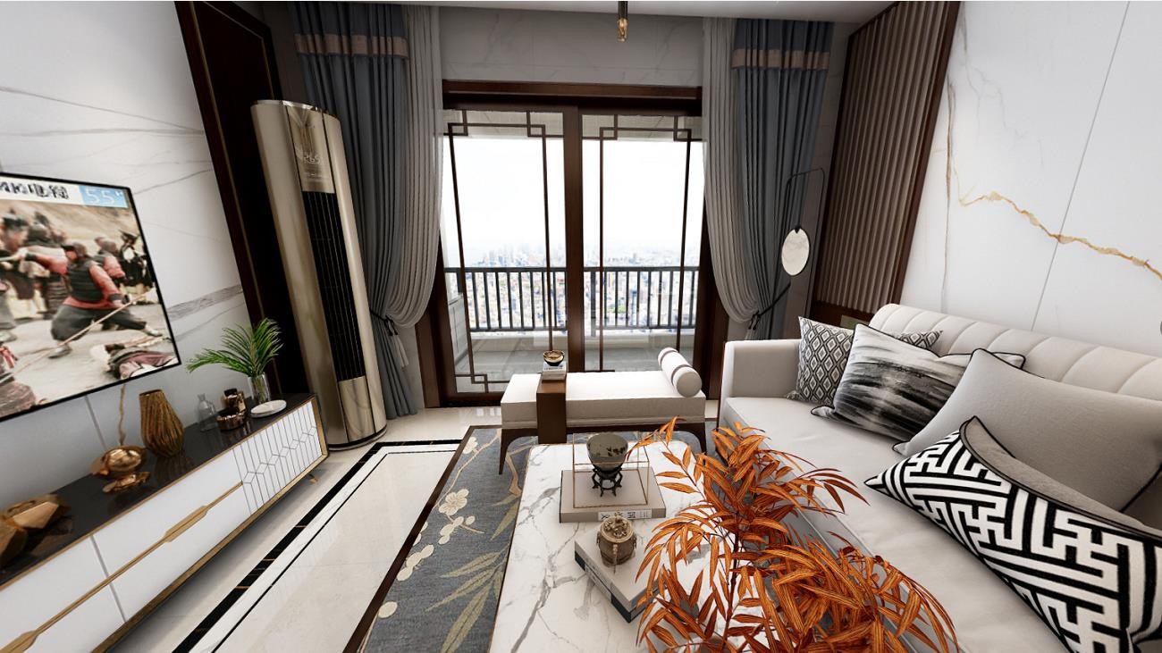以白色色调为主的典雅风客厅与生活阳台相连,实用美观,增加客厅的通透性和采光度。