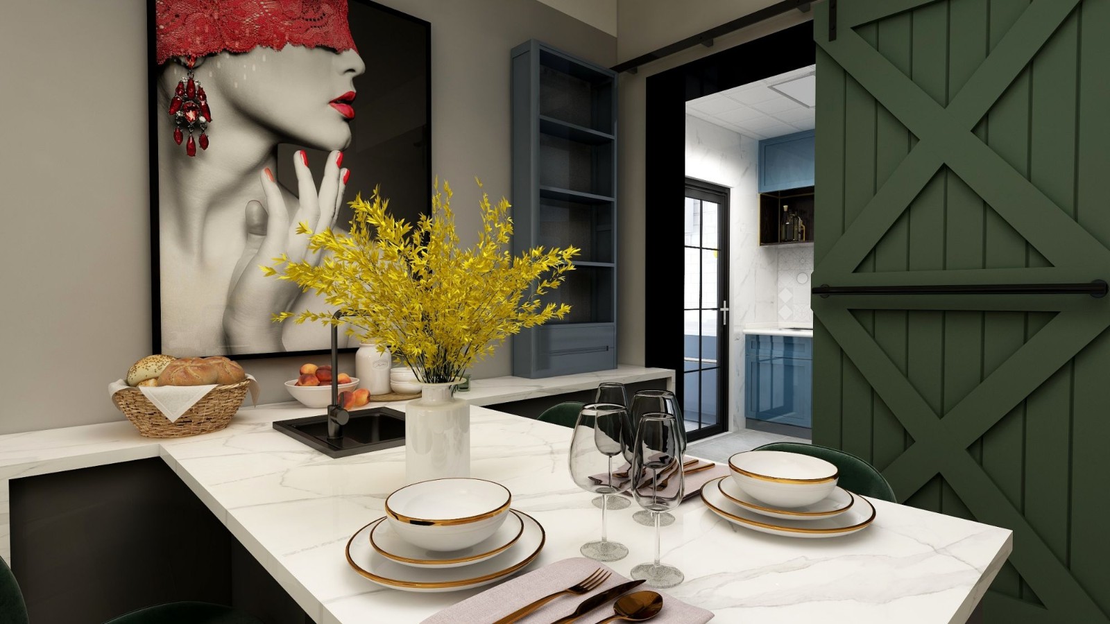 在颜色上我采用了整体灰色搭配复古绿的色简约不失优雅,喜欢那幅带有一丝感性的画,时刻提醒着生活应该是优雅的,精致的