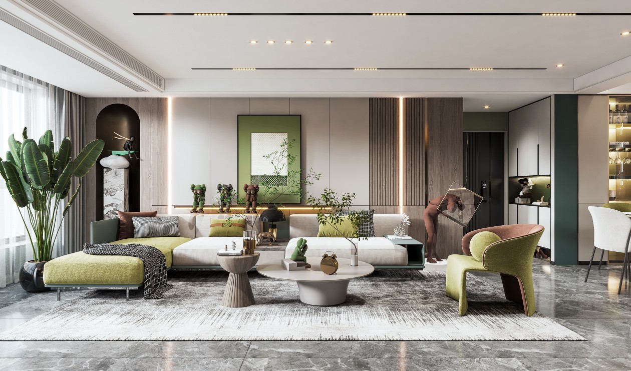 时尚大气的客厅搭配无主灯设计