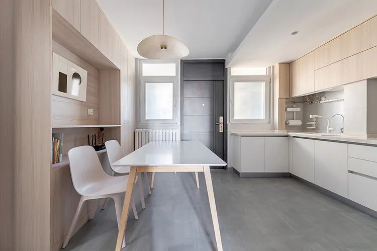 整个空间保留了宽敞的活动区域,无论流动动线,桌前坐人,还是在厨房频繁操作,都不影响受到丝毫阻碍。